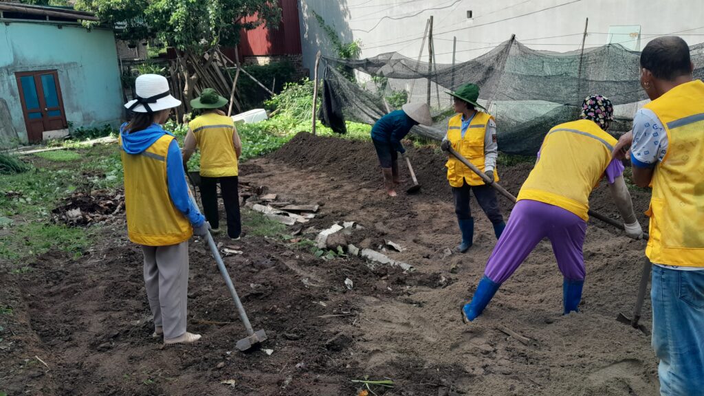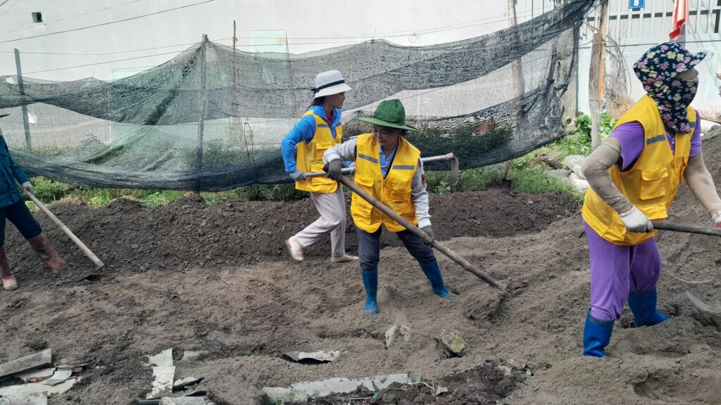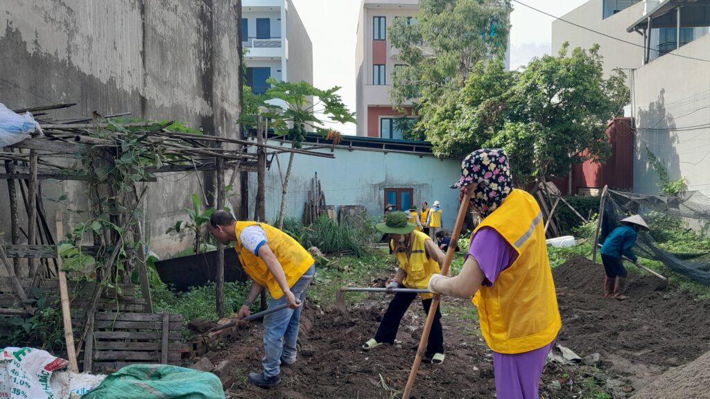 Một buổi sáng rộn ràng, tiếng cuốc, tiếng xẻng vang lên xen lẫn những tràng cười giòn của các thành viên Cộng đồng Gia Đình Hạnh Phúc. Hơn hai chục bạn trẻ đã cùng nhau tham gia hoạt động phụng sự làm nền vườn, góp sức san đất, dọn cỏ, và tạo mặt bằng cho khu vườn mới của một hộ dân. Không ai quản ngại nắng nóng hay vất vả, tất cả đều làm việc bằng tinh thần hăng say và tấm lòng chân thành, mang đến hình ảnh đẹp của tuổi trẻ năng động và thiện nguyện.