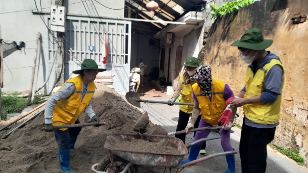 Công việc tưởng chừng đơn giản nhưng đòi hỏi sự kiên nhẫn và phối hợp ăn ý. Mỗi người một tay – người xúc đất, người gánh cát, người dọn cỏ – ai cũng tất bật nhưng vẫn luôn giữ nụ cười trên môi. Càng làm, tinh thần đồng đội càng gắn kết, tạo nên bầu không khí sôi nổi, tích cực và tràn đầy năng lượng. Người dân địa phương chứng kiến không khỏi xúc động trước sự nhiệt huyết của những “chiến binh áo xanh” ấy.