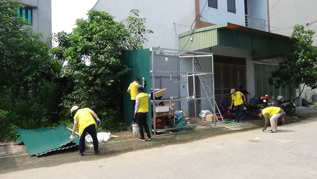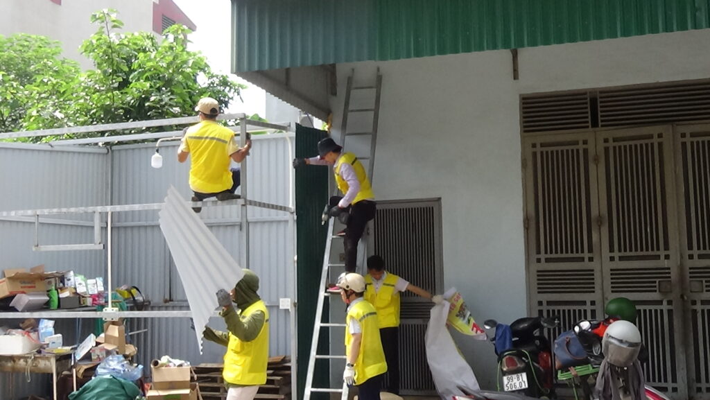 Với tinh thần “phụng sự là niềm vui”, các bạn trẻ Cộng Đồng Gia Đình Hạnh Phúc đã cùng nhau tham gia hoạt động dỡ mái nhà cho một hộ gia đình đang cần sửa chữa và cải tạo lại. Ngay từ sáng sớm, tiếng nói cười rộn ràng đã vang lên, hòa cùng âm thanh của công việc. Dù phải leo trèo, khuân vác, tháo từng tấm tôn nặng, ai nấy đều đầy nhiệt huyết, hăng say và phối hợp nhịp nhàng.